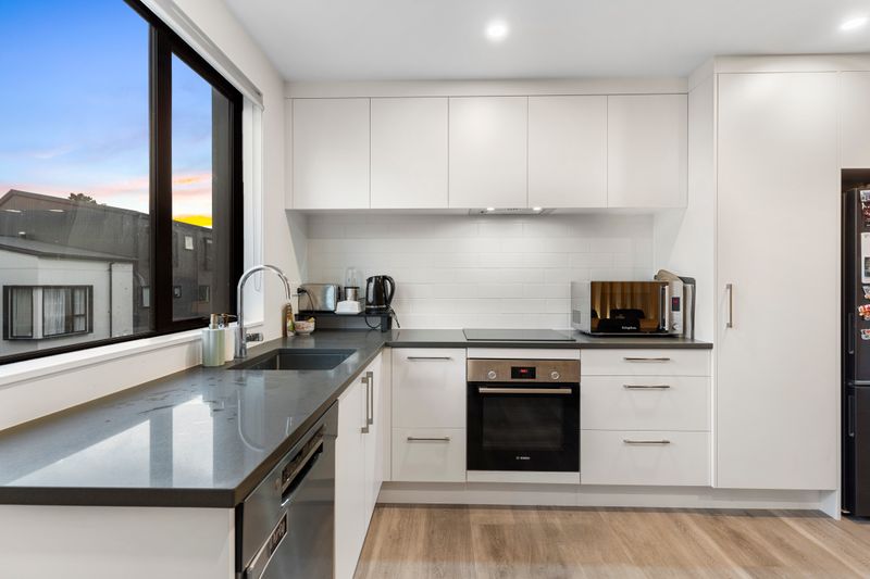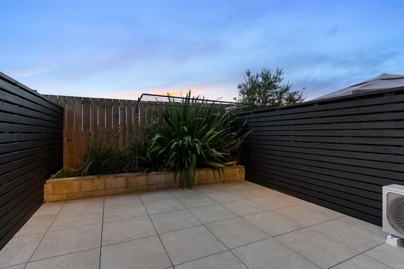 The open plan living and dining area is bright, welcoming and quietly positioned, flowing seamlessly to a private, sun-soaked patio garden. Easy-care and thoughtfully designed, it's the perfect setting for relaxed evenings, weekend entertaining, or simply unwinding without the distraction of road noise.